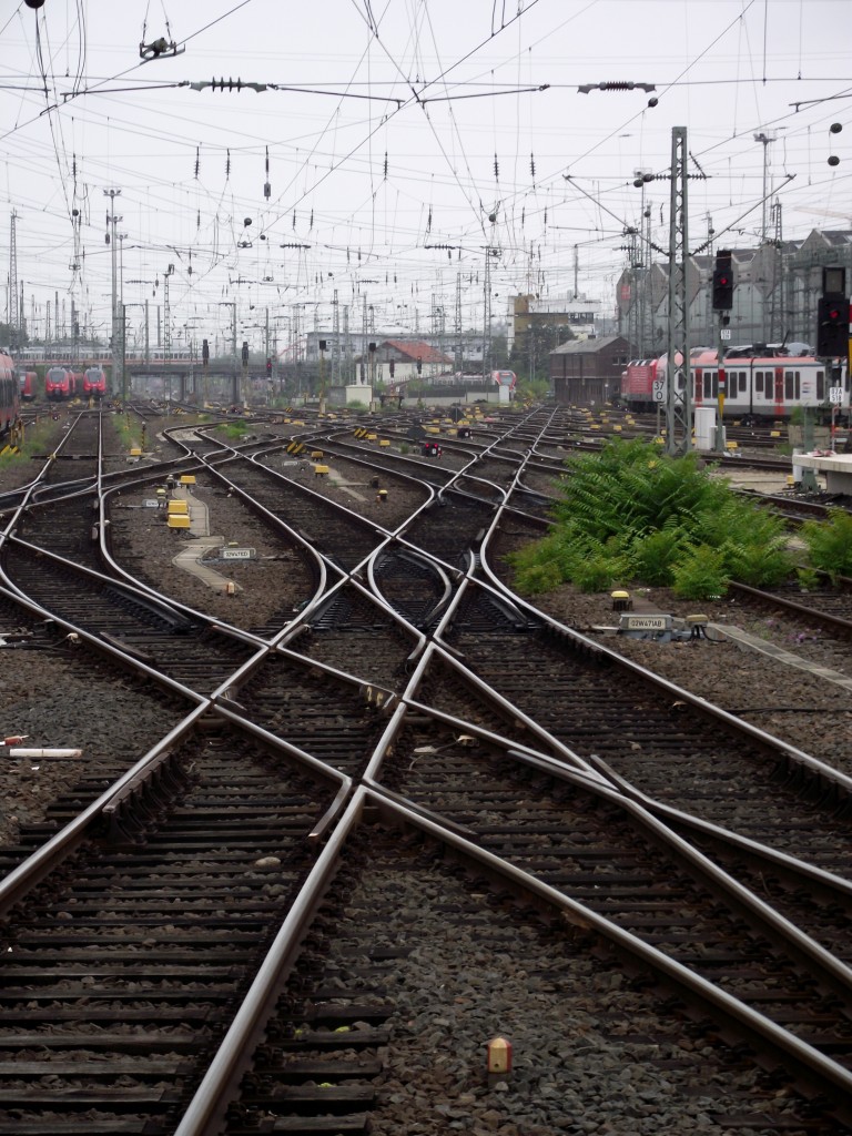 Im Frankfurter Gleisvorfeld gibt es viel Doppelkreuzungsweichen. Hier am 08.09.13