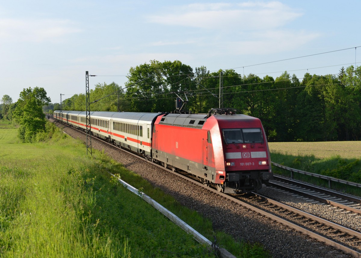 101 007 mit einem EC nach Graz am 19.05.2012 bei Hilperting.