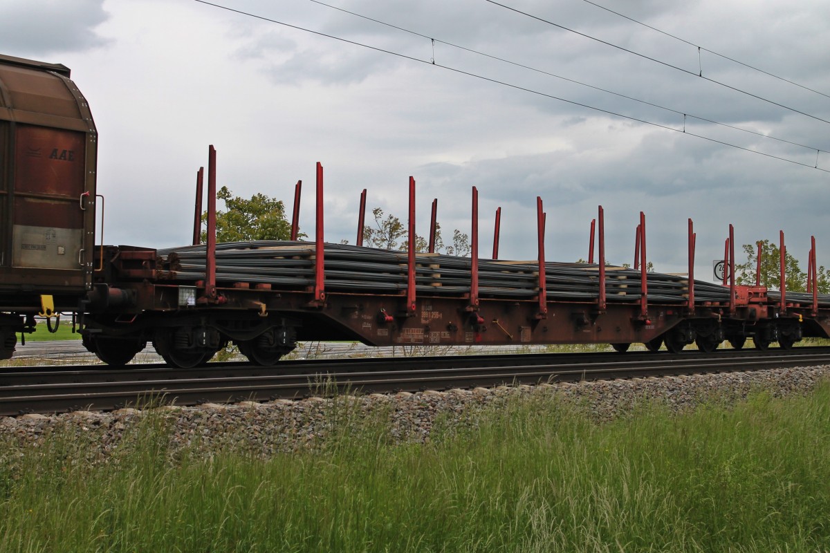 Am 23.05.2013 fuhr der Rns-z 399 1 255-1 mit Stahl an zweit letzter Stelle eines Güterzug durch die Ortschaft Hügelheim, nördlich von Müllheim (Baden).