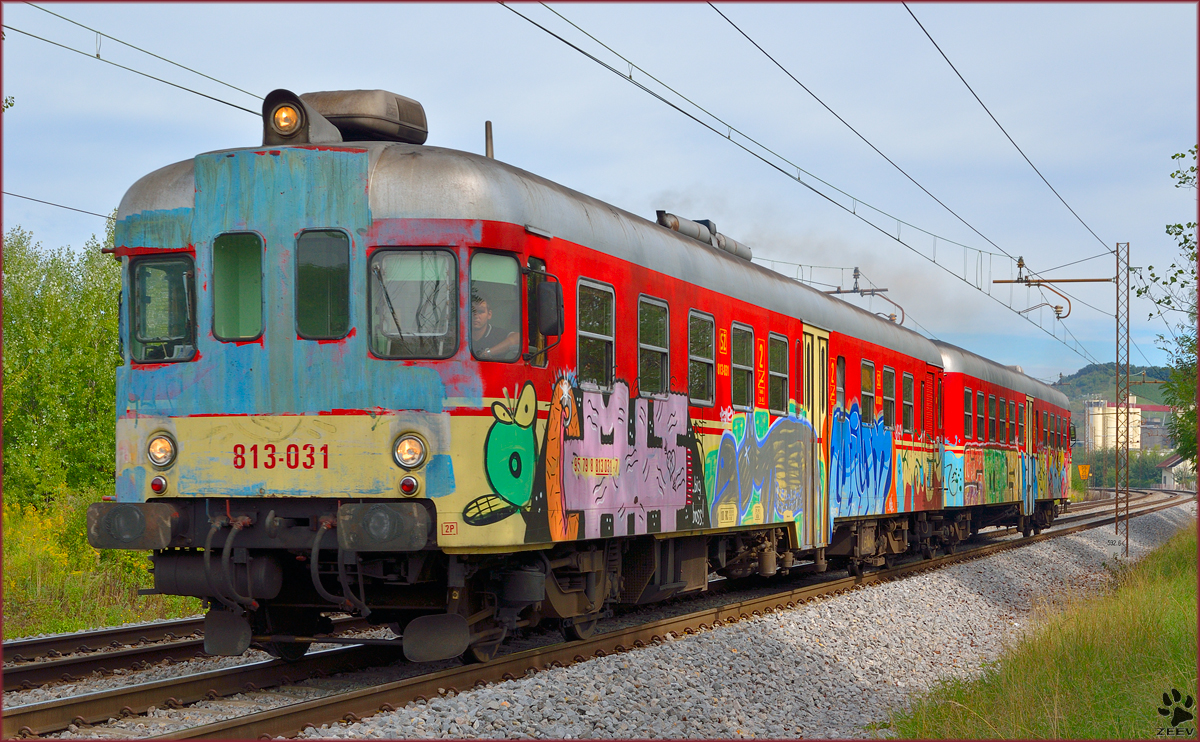 Die 95 Kilometer lange Strecke von Knin nach Zadar wird leider täglich nur von 3 Zugpaaren befahren, eingesetzt wird jeweils ein Triebwagen der Baureihe 7122. 7122 007 fährt am 26.08.2013 als 5702 von Zadar nach Knin und überquert bei Sopot eine kleine Brücke.