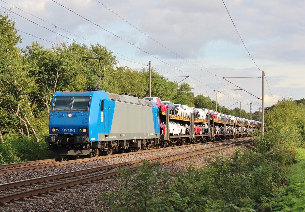 Am 21.September 2013 war RHC 185 521 mit einem Autozug bei Marienborn auf dem Weg Richtung Westen.