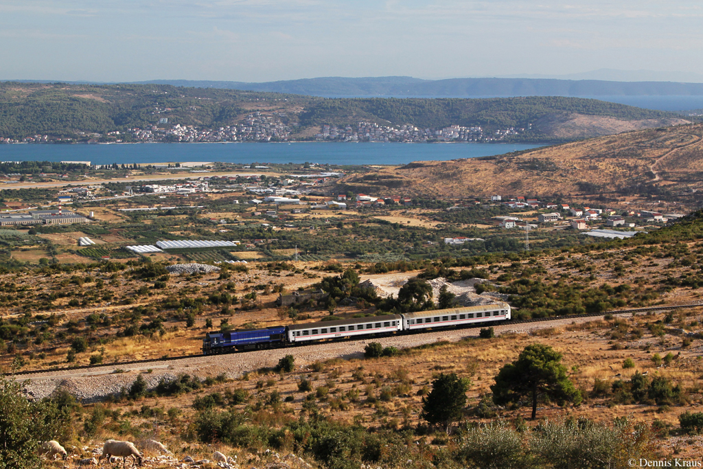 Die kroatische Baureihe 7123 entspricht der deutschen Baureihe 612. Ursprünglich wurden 8 Triebzüge an die HZ geliefert, von denen ist mittlerweile wegen diverser Unfälle und großen Schäden an den Fahrzeugen nur noch ein Triebwagen einsatzbereit! 7123 007/008 ist am 28.08.2013 als ICN 522 von Split nach Zagreb unterwegs, hier bei Kastel Stari.