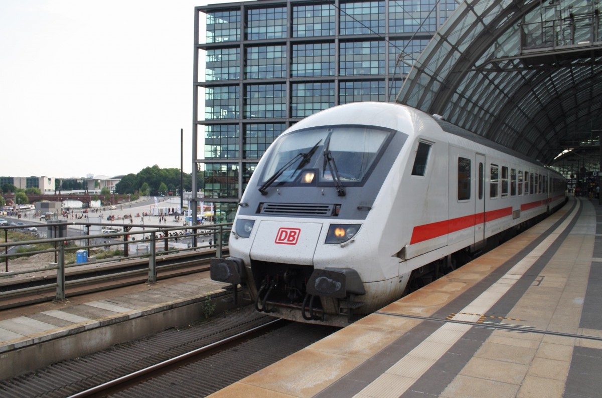 Hier IC2431 von Emden Außenhafen nach Cottbus, bei der Ausfahrt am 26.7.2013 aus Berlin Hbf. Schublok war 101 017-2.