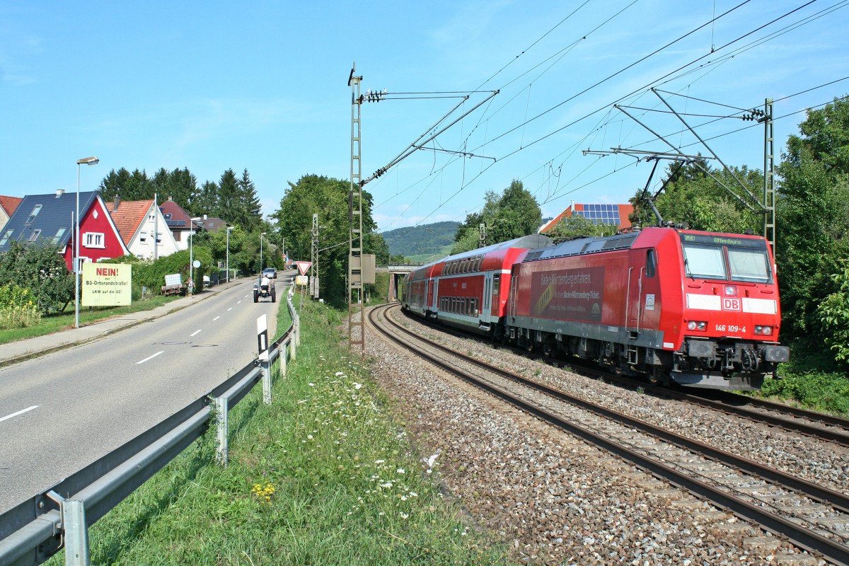 VS 14 und VT 8 der SAB als SAB-Sommerferien-Express (Münsingen-Schelklingen) bei Sondernach 21.8.13