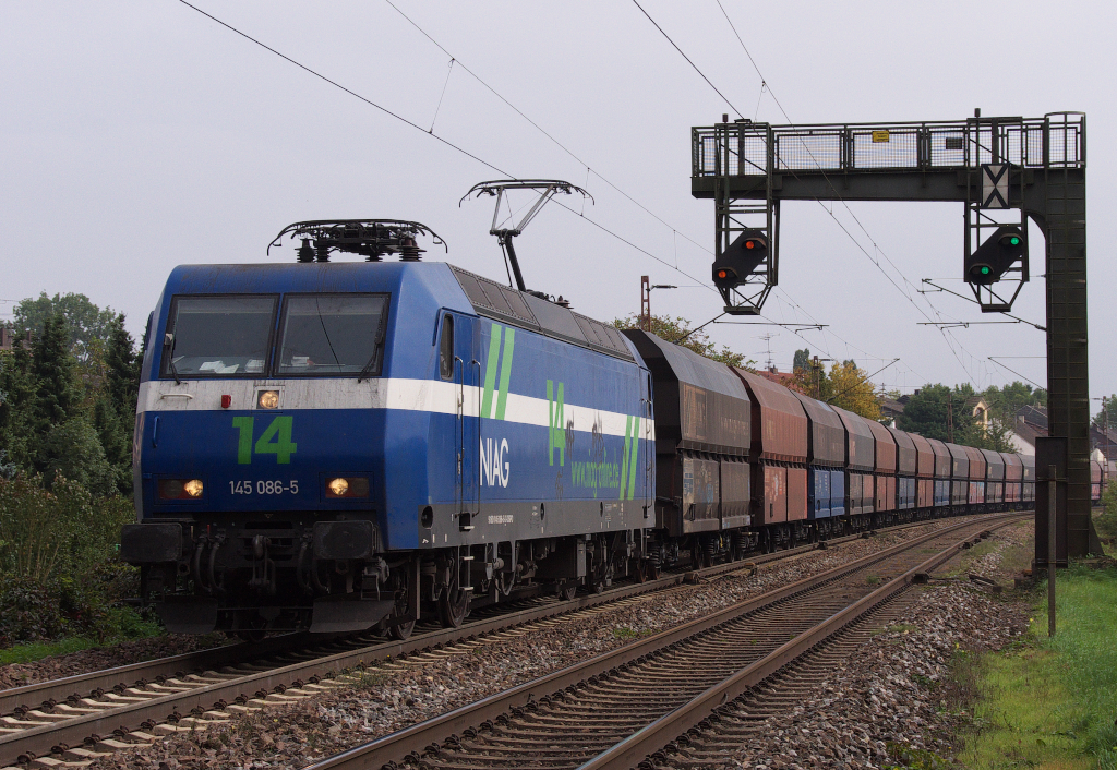 Zebraalarm - 186 284 bespannte am 28. September 2013 den stark verspäteten Lokomotion-Ekol in Richtung Süden. Vor der Kulisse der Burg Staufeneck betätigte ich bei Süßen den Auslöser.