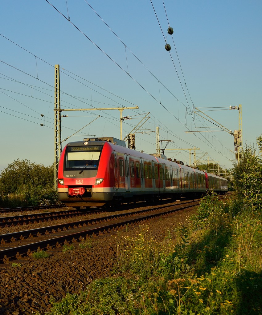 S5/S8 nach Mönchengladbach geführt vom 422 068-7 in Kleinenbroich. 4.9.2013