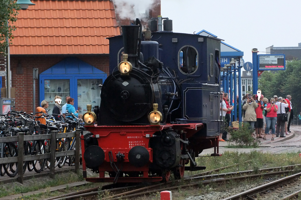Lok "Emden" vor einem Zug auf Borkum Richtung Hafen 7.9.2013