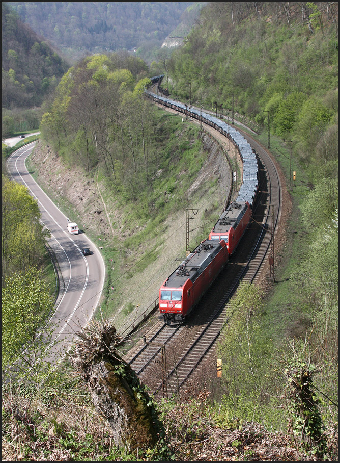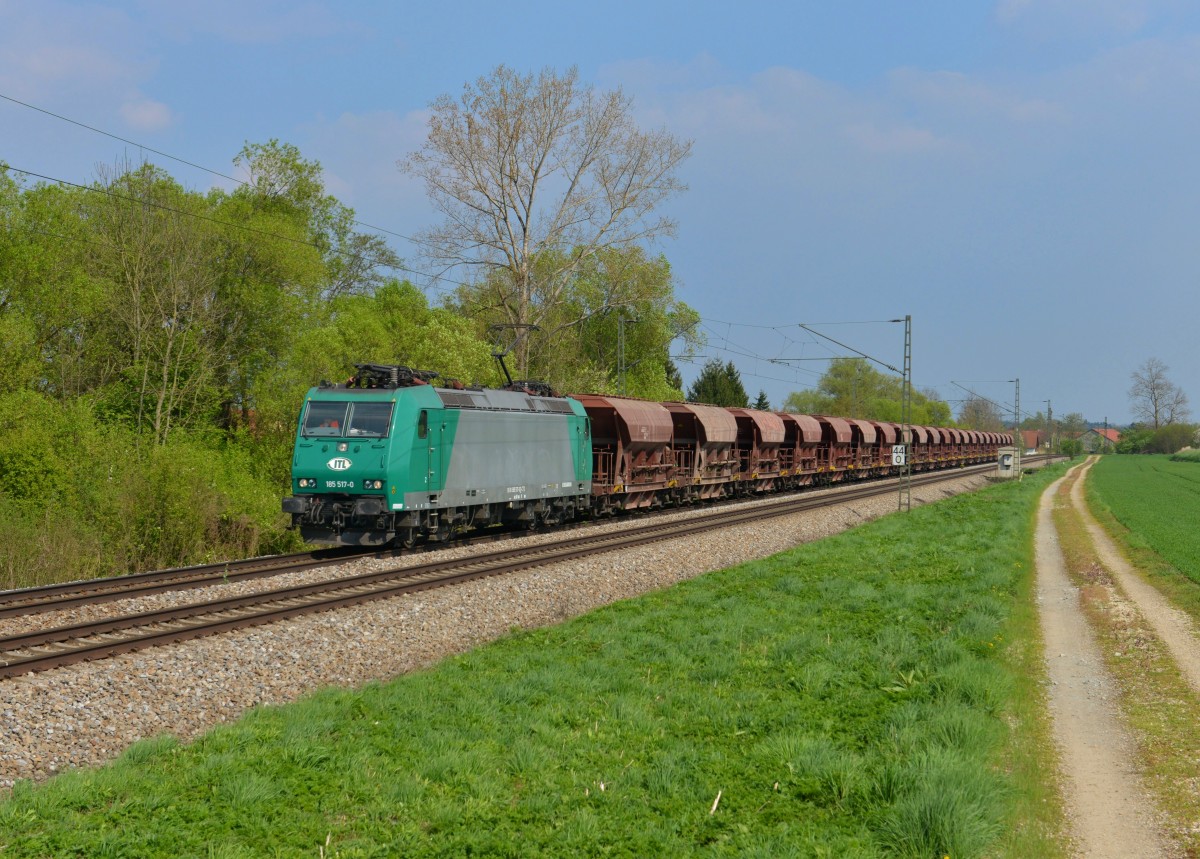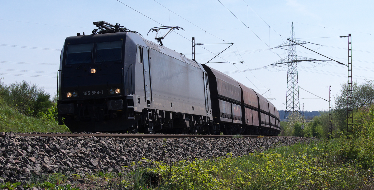 Am 29.3.14 fuhr 185 164 mit einem Gemischten über die Rheinbahn.