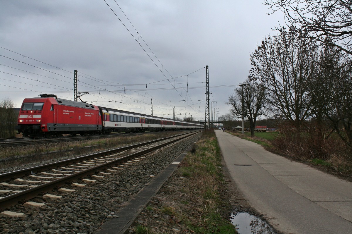 101 066-9 mit dem EC 6 von Zürich HB nach Hamburg-Altona am Nachmittag des 28.02.14 in Müllheim (Baden).