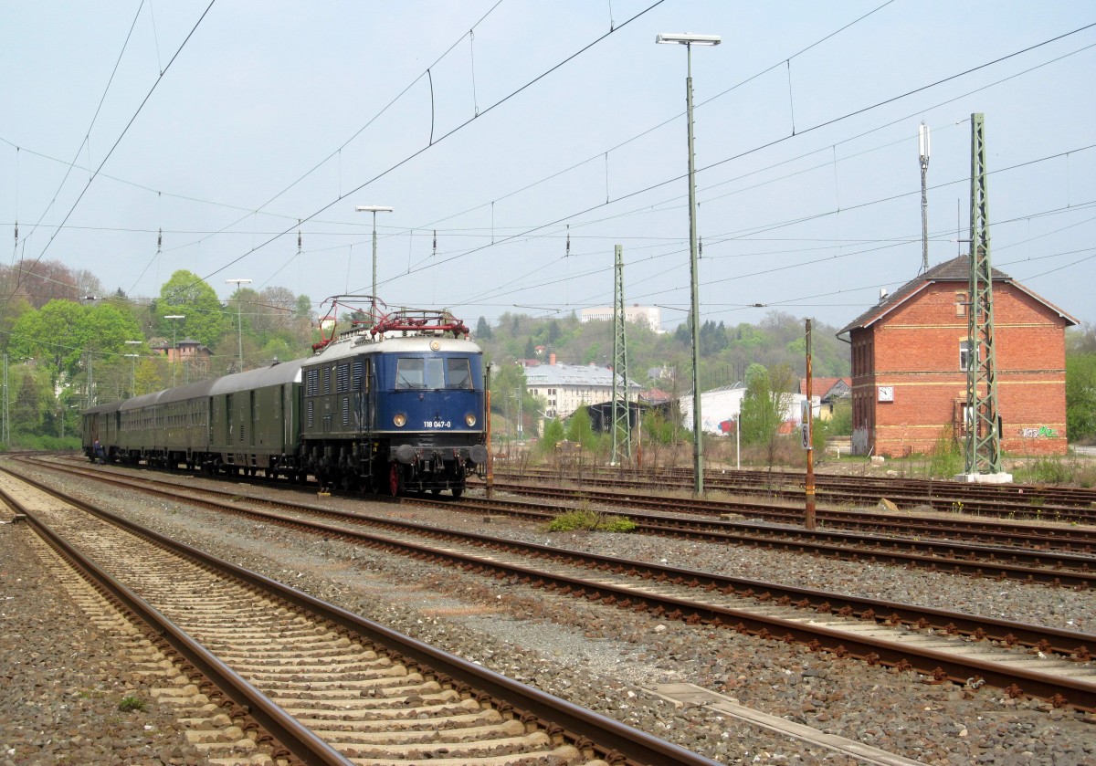 118 047-0 mit N Coburg - Bamberg im Coburger Güterbahnhof am 13. April 2014.