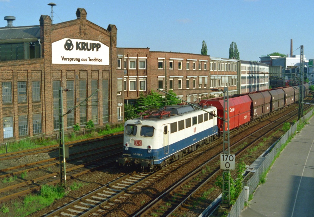 140 695 mit Güterzug zum Hansaport am 17.05.1999 zwischen Hamburg-Harburg und Hamburg Unterelbe