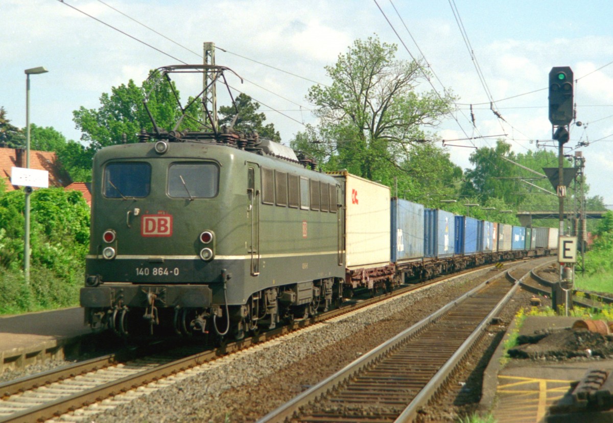 140 864 mit Güterzug Richtung Hannover am 13.05.1999 in Alfeld (Leine)
