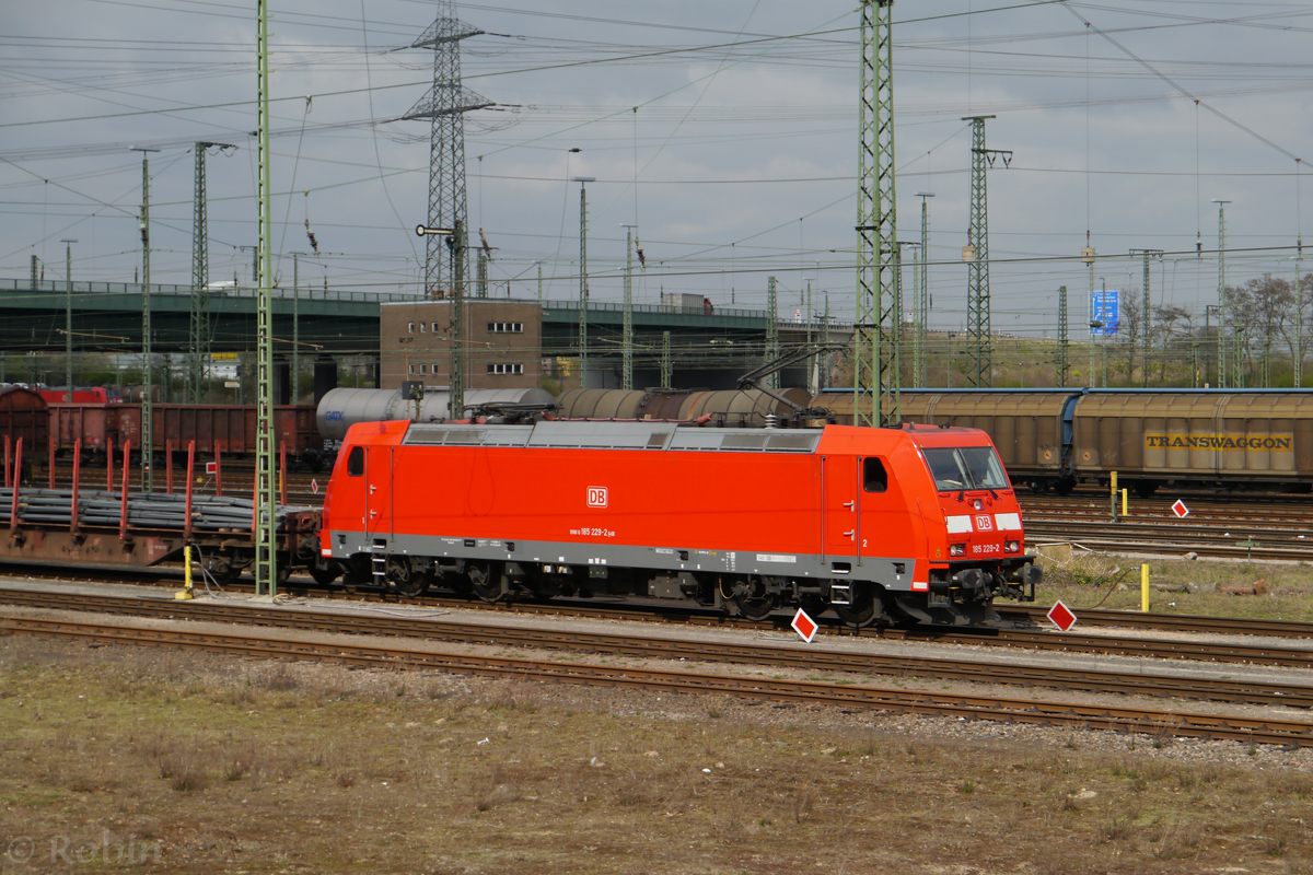 185 229-2 fährt mit einem gemischten Güterzug aus dem Mannheimer Rangierbahnhof. (19.03.2014)