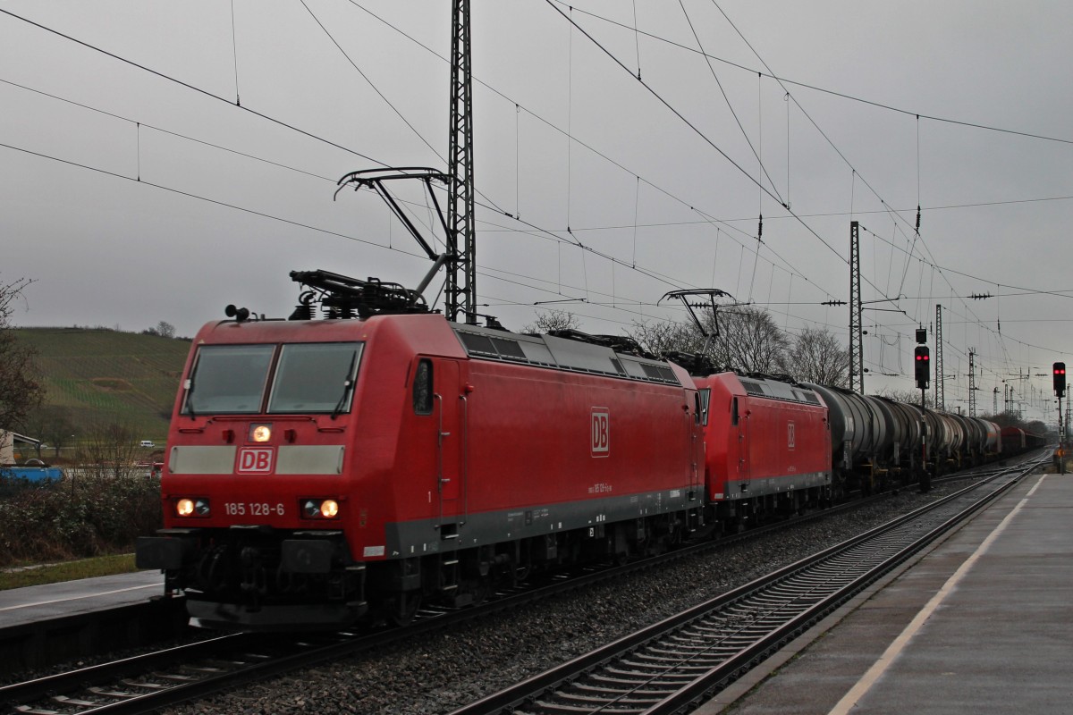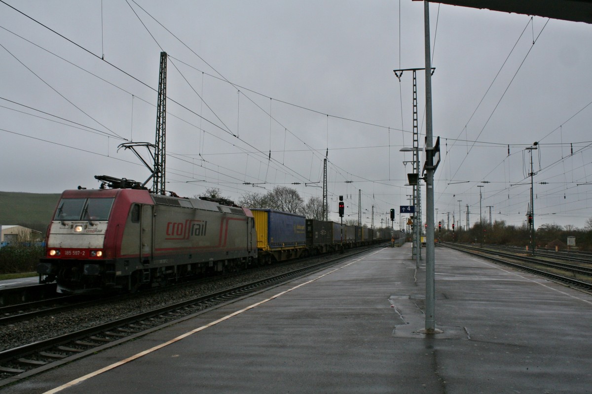 185 597-2 mit einem KLV-Zug auf dem Weg in Richtung Aachen West am Nachmittag des 28.02.14 aufgenommen in Müllheim (Baden).