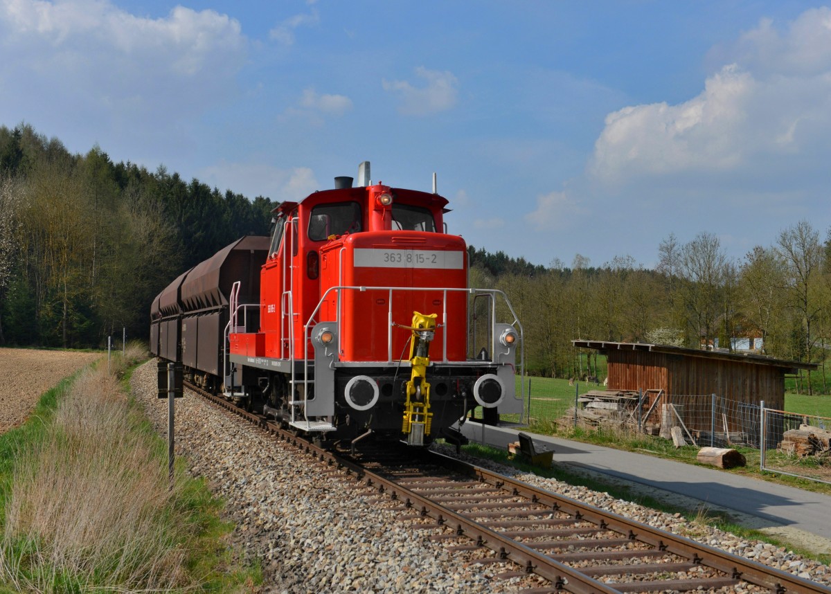 Im "Münchner Outback" kann man sich noch an den Straßenrand setzen und diesen Güterzug, der mit einer 247 bespannt, über eine Brücke bei Ottenhofen von Mühldorf nach München fuhr, fotografieren.