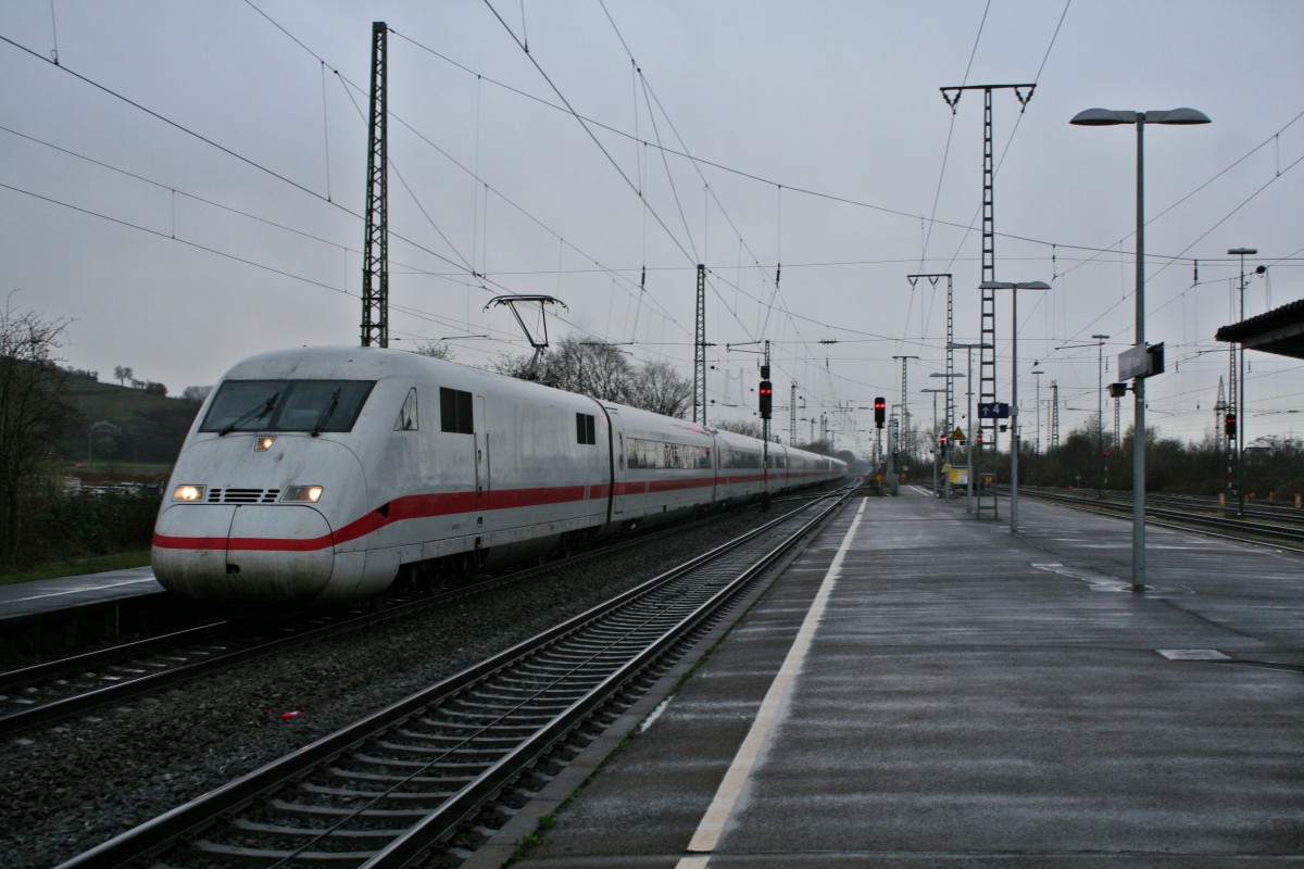 402 029-3 und 808 022-8 als ICE 274 von Basel SBB nach Berlin Ostbahnhof am Nachmittag des 28.02.14 in Müllheim (Baden).