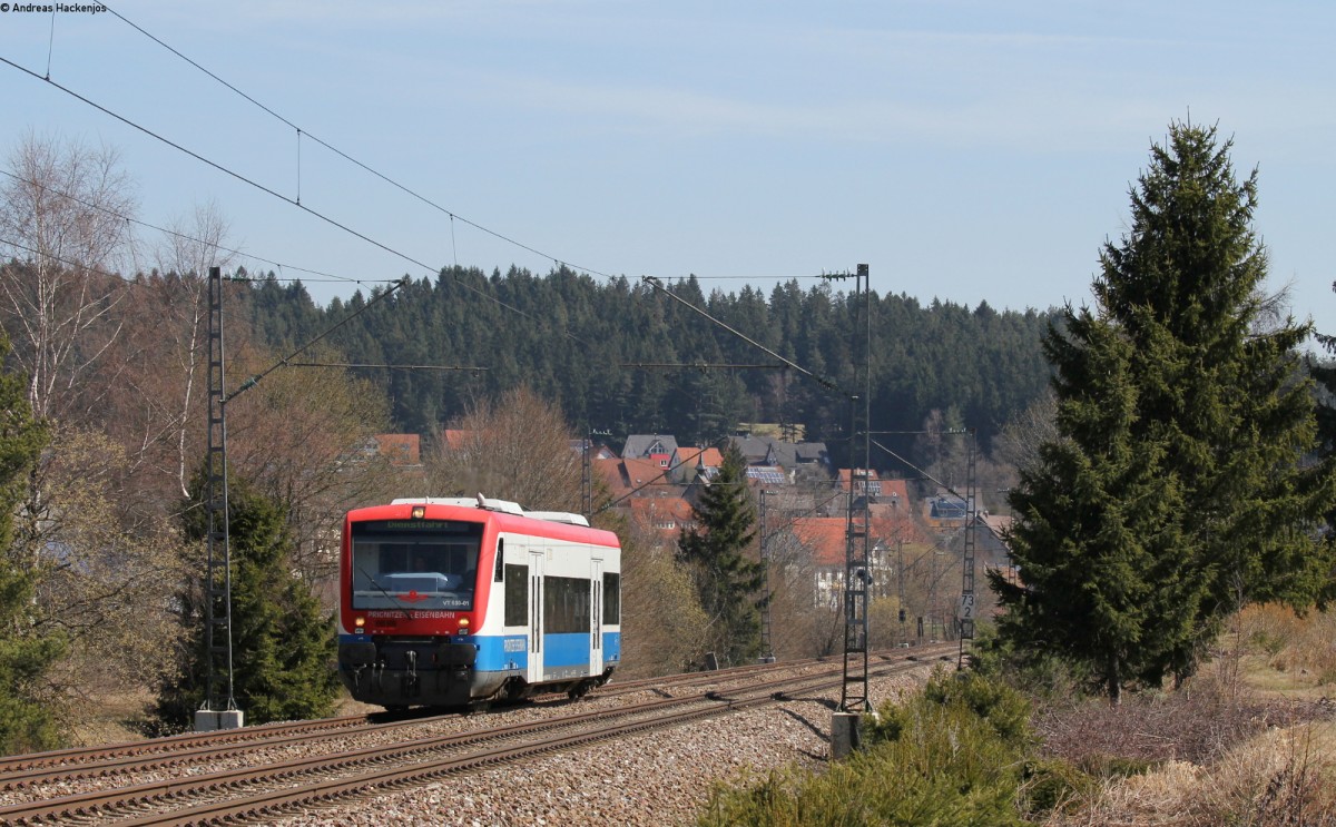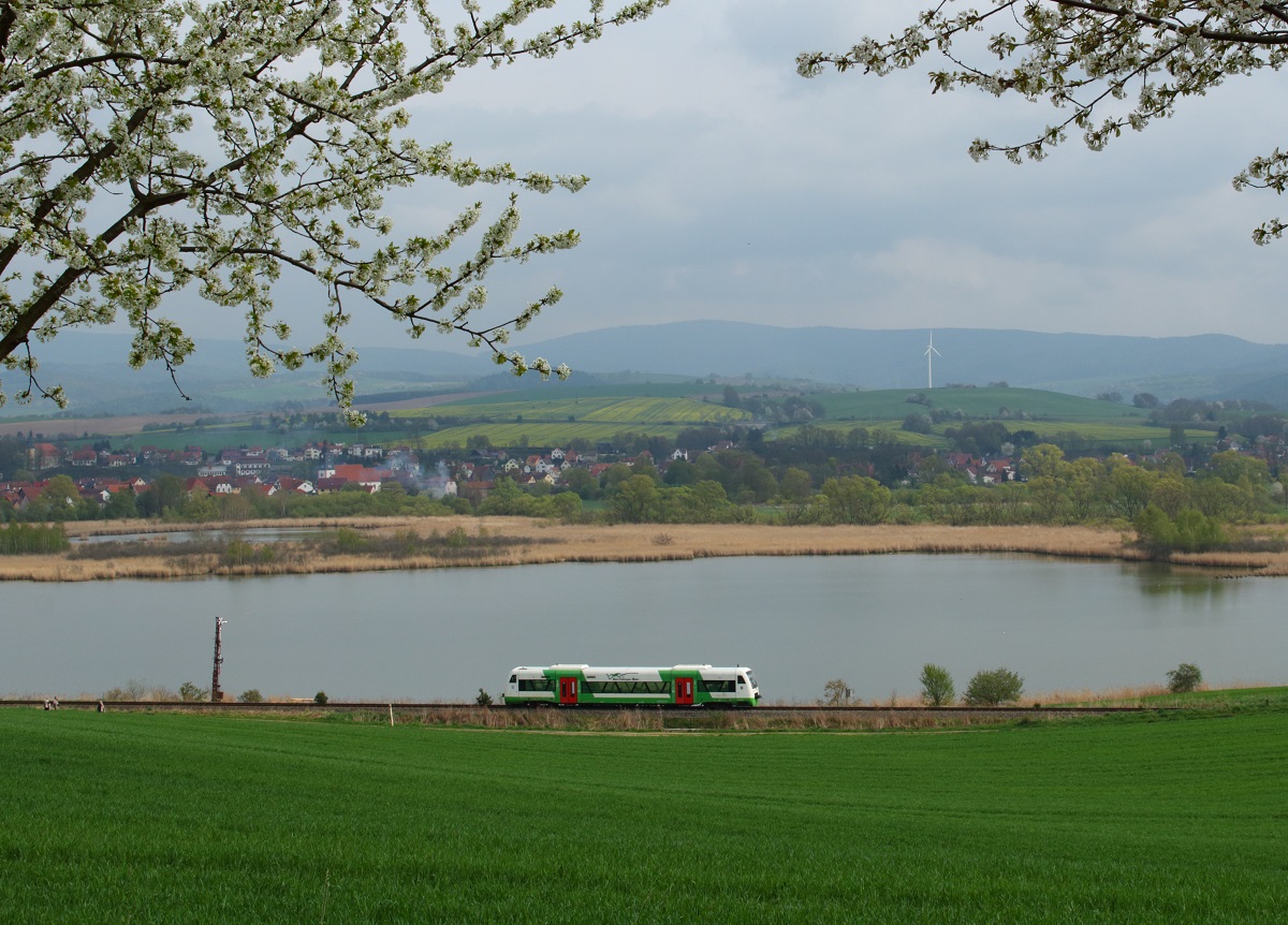 Bei Breitungen ist ein VT der Süd-Thüringen-Bahn von Meiningen nach Eisenach unterwegs (12.04.2014)