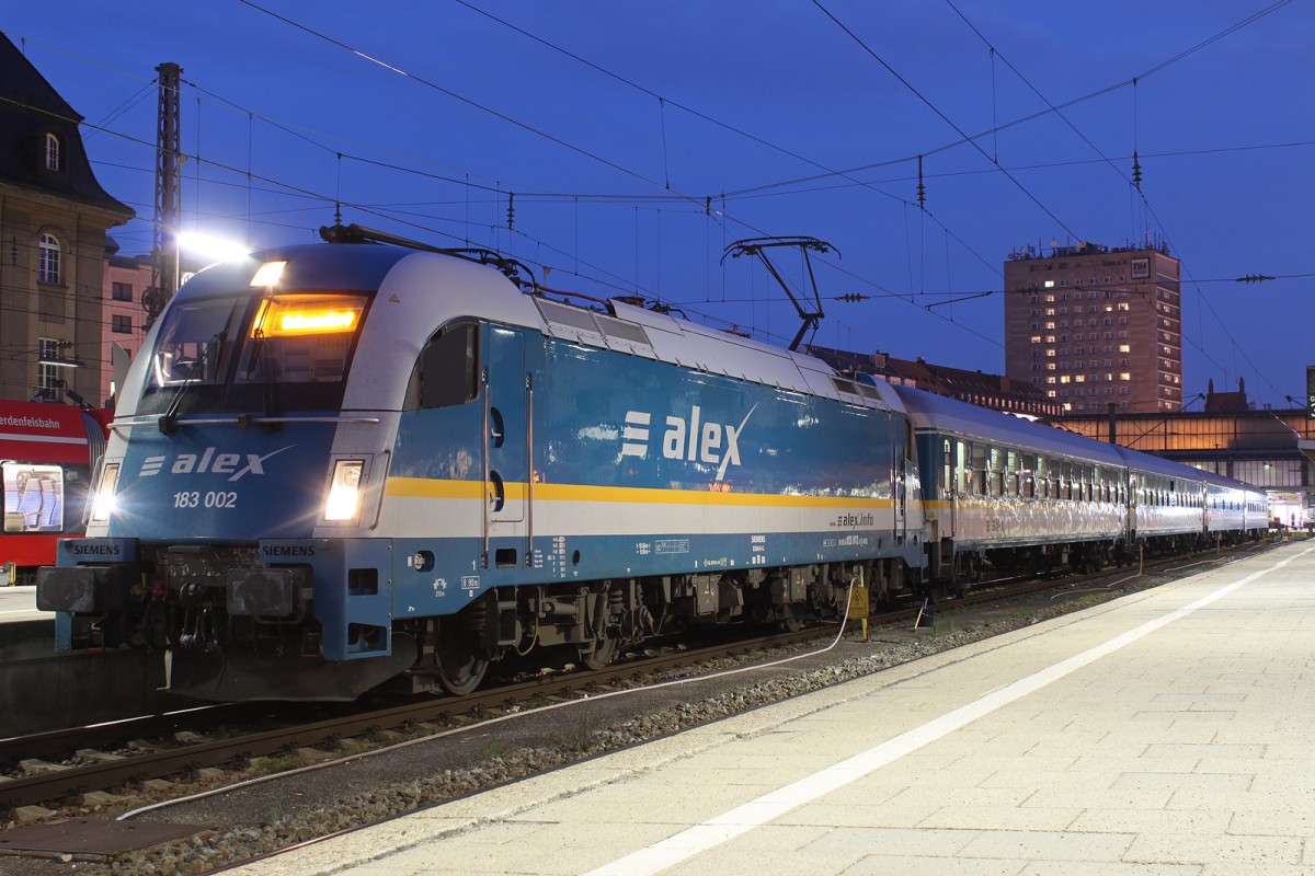 Alex 183 002 stand am 12.4.14 mit dem Alex nach Hof im Münchener Hbf.