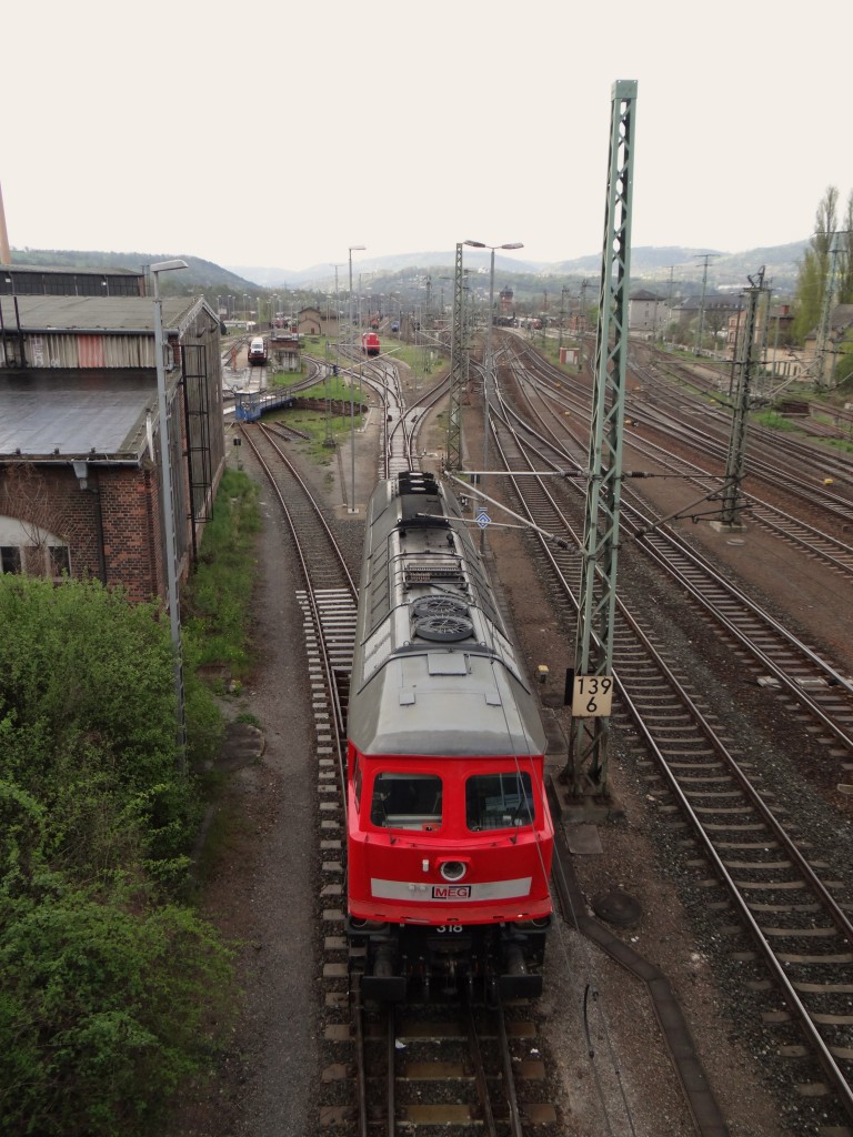 VT 118 der Süd-Thüringen-Bahn verläßt am 11.04.2014 den Bahnhof Immelborn