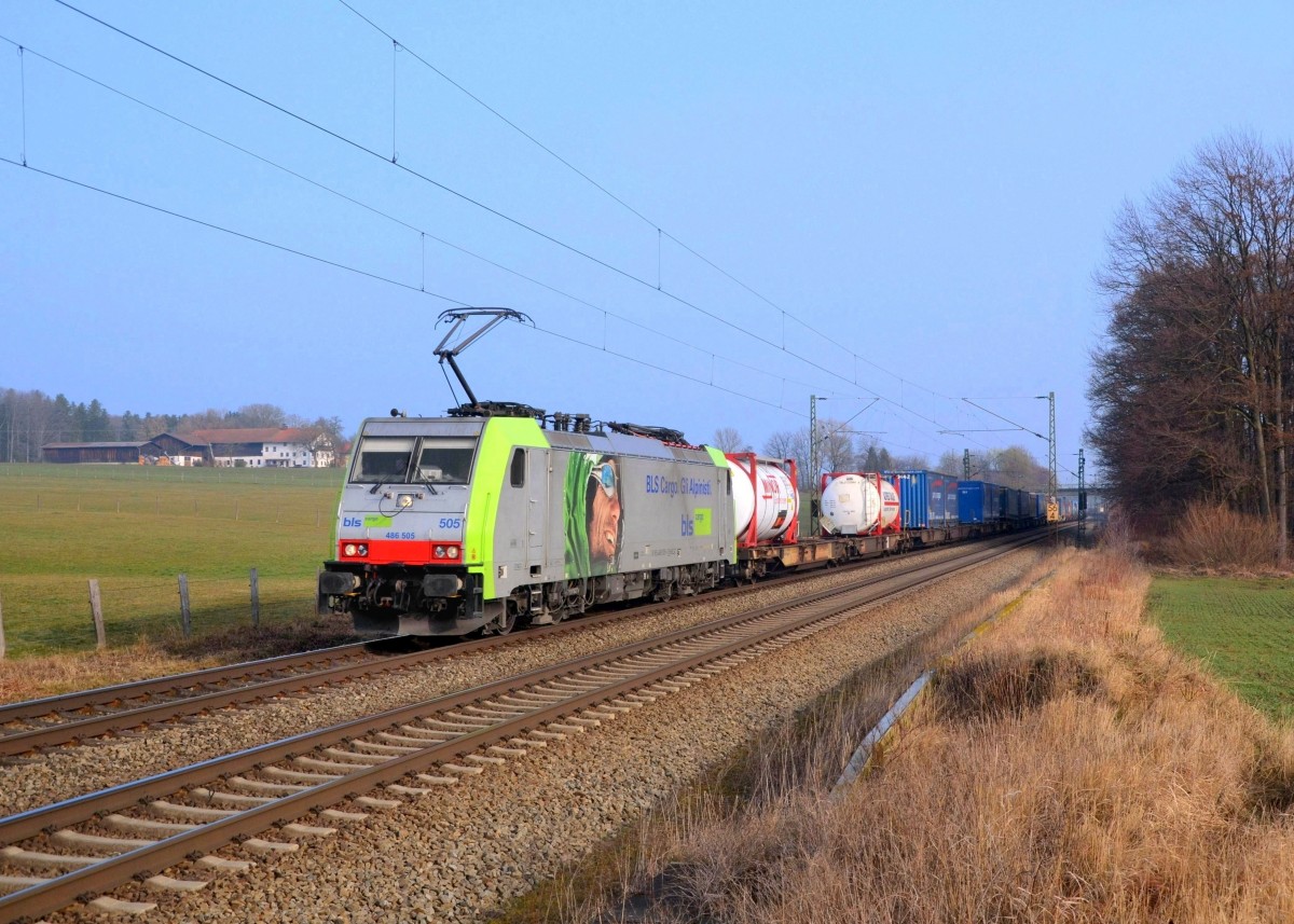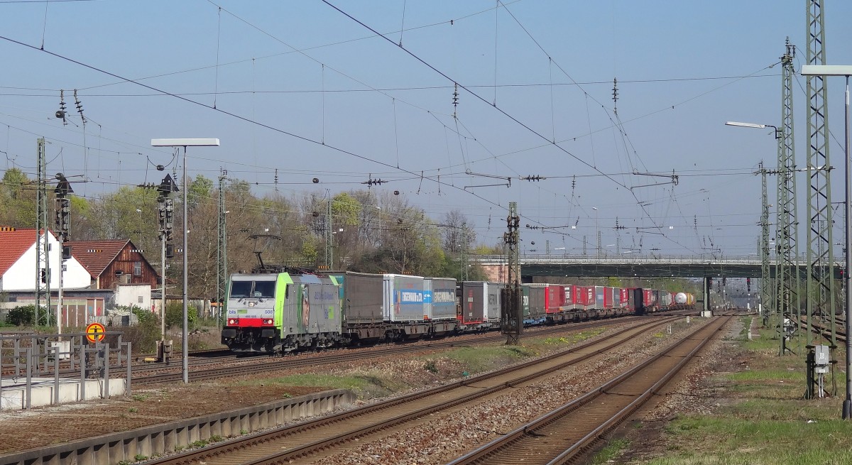 Am 29.3.14 durchfuhr die 486 508 den Bahnhof Graben Neudorf in Richtung Karlsruhe.