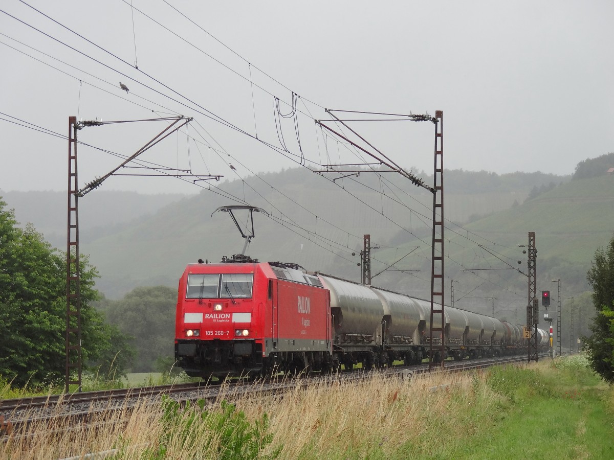 Am 29.6.13 durchfuhr 185 260 mit einem Zementzug das Maintal.