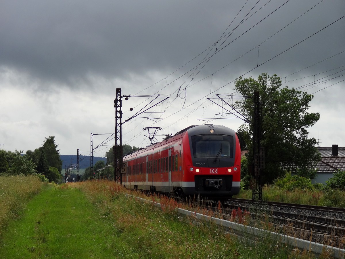 Während am 29.6.13 das Wetter verrückt spielte, schoss die 146 240 mit einem Zug, welcher aus Modus Wagen gebildet wurde, nach Frankfurt am Main.