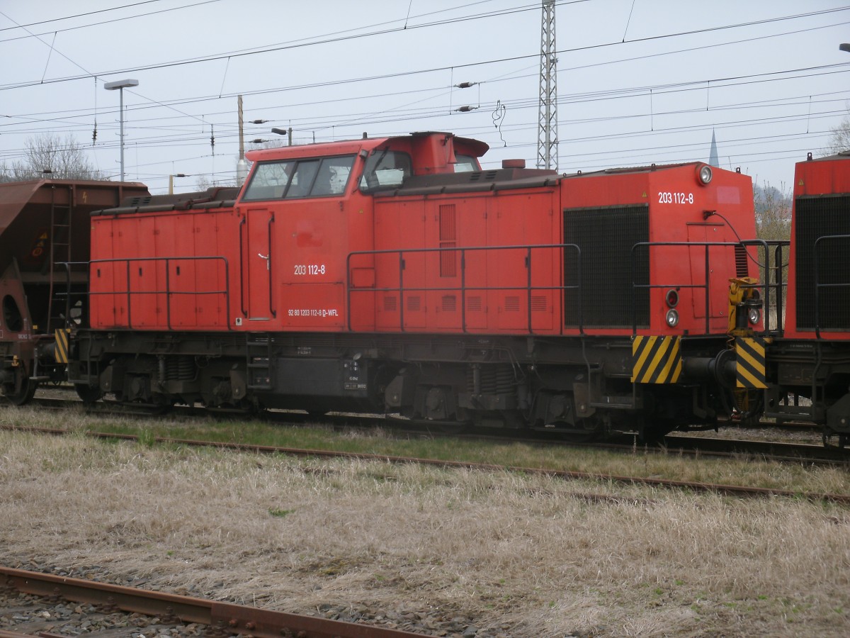 Zusammen mit 203 113 übernahm 203 112 von WFL,am 06.April 2014,einen Schotterzug aus Mukran ab Bergen/Rügen.