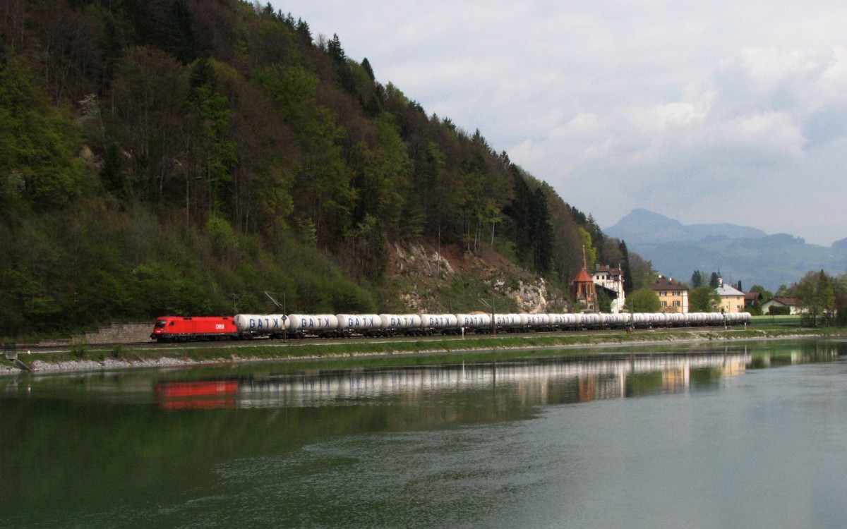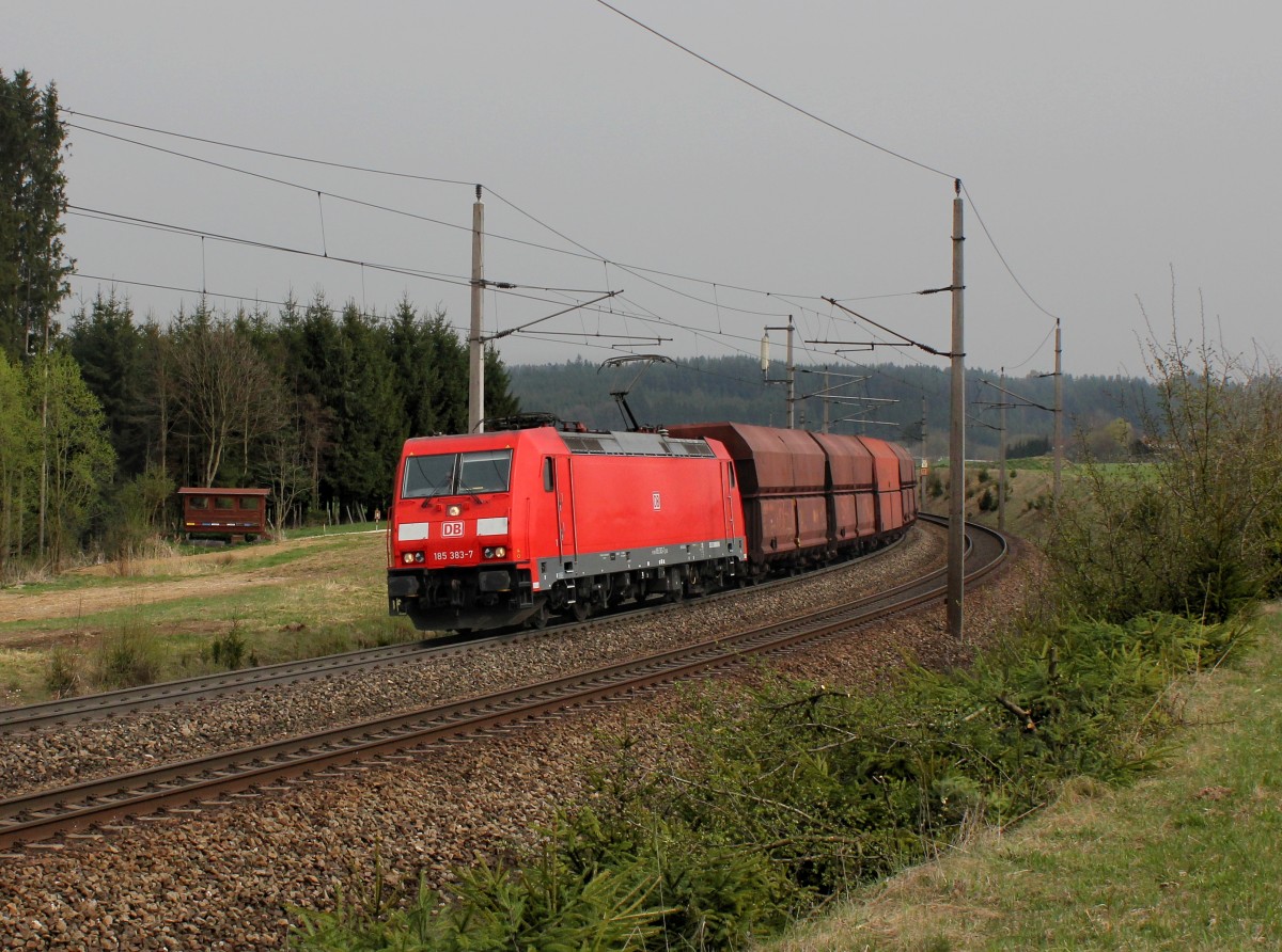Die 185 383 mit einem Erzzug am 05.04.2014 unterwegs bei Pöndorf.