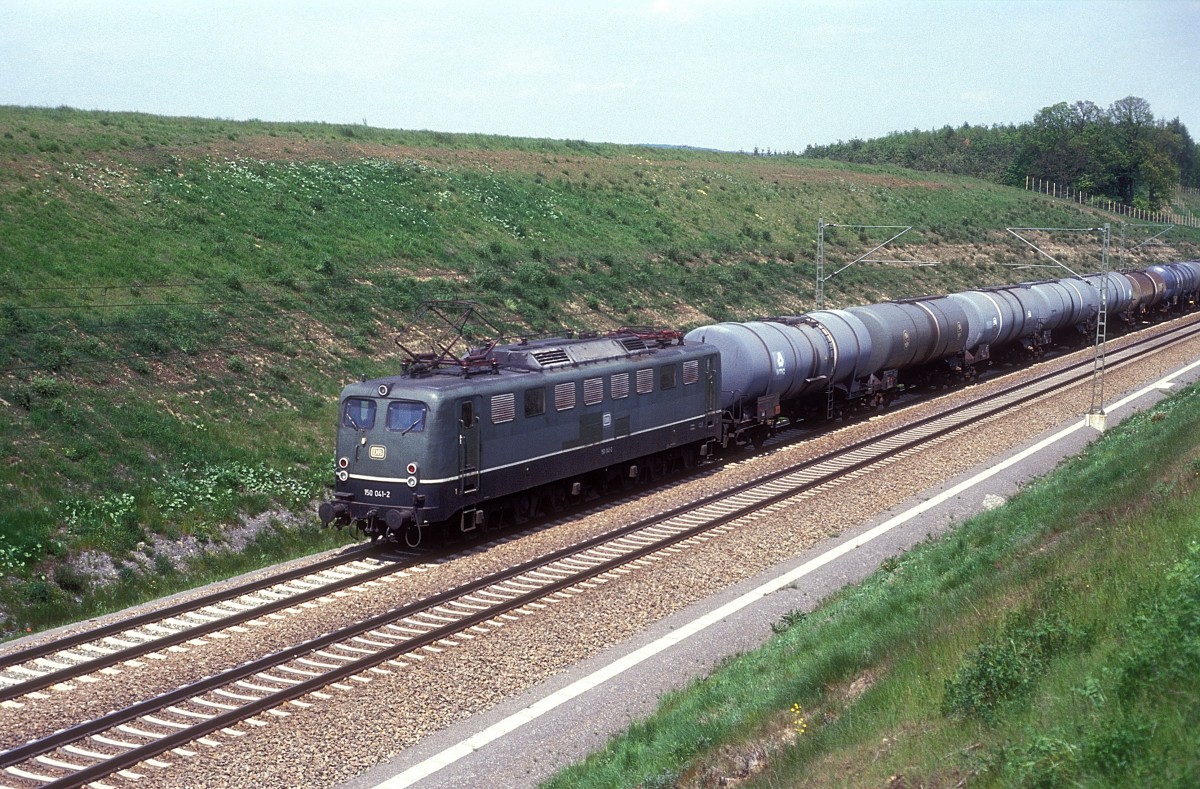 Nach einem Regenschauer kommt die 185 190-6 mit einem Tankwagenzug an den BÜ Dahler Weg in Wickrath herangefahren. 14.4.2014
