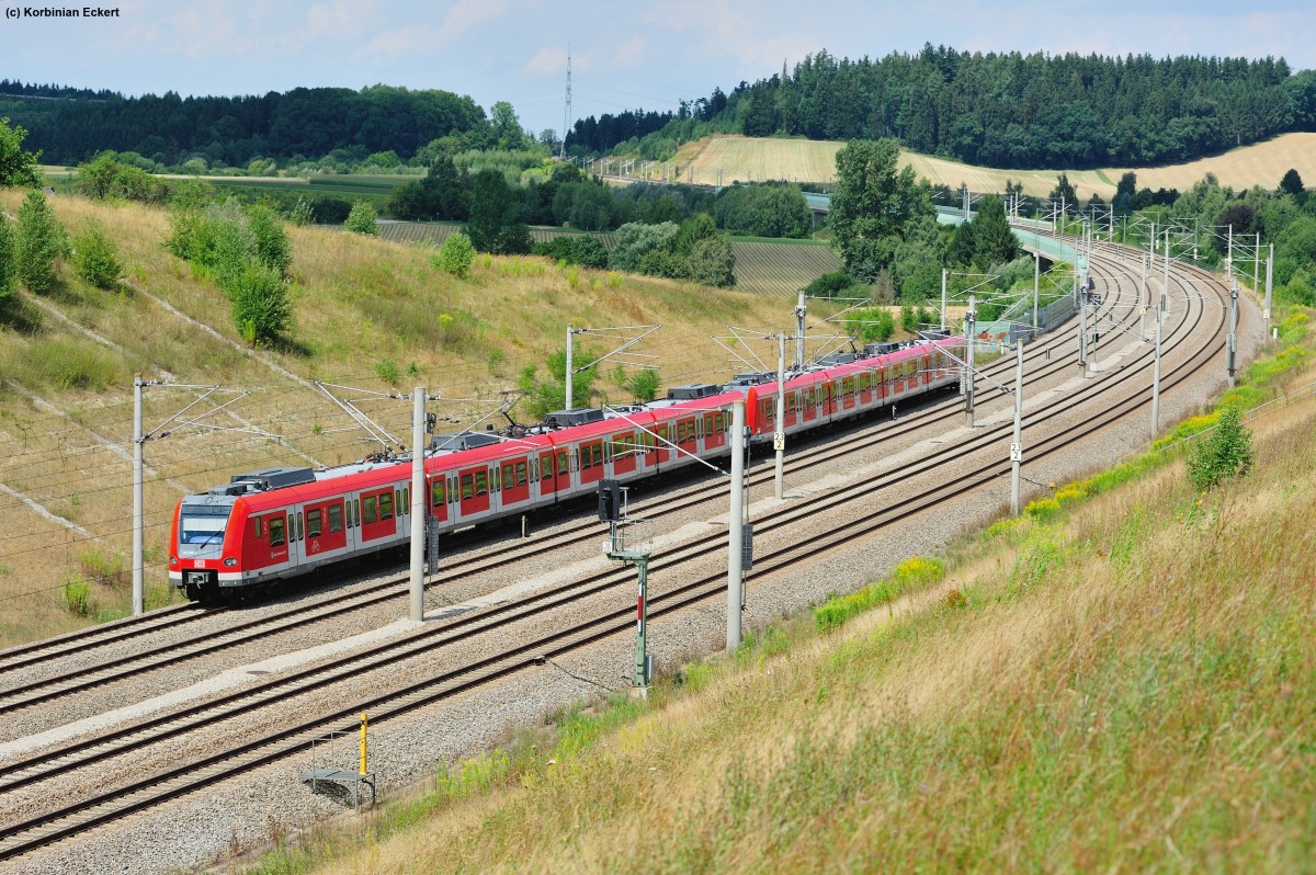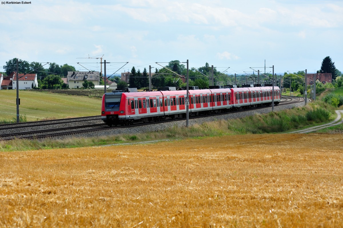Zwei unbekannte 423 als S 2 6271 von Petershausen nach Erding kurz vor Hebertshausen, 13.08.2013