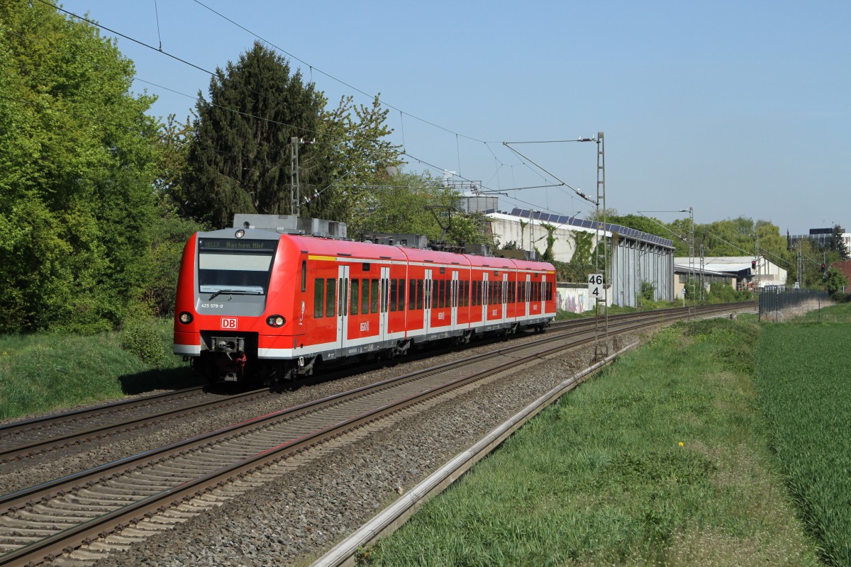 Vor wenigen Augenblicken hat der 425 072-6 den Bahnhof Wickrath verlassen auf seinem Weg nach Aachen Hbf. 14.4.2014