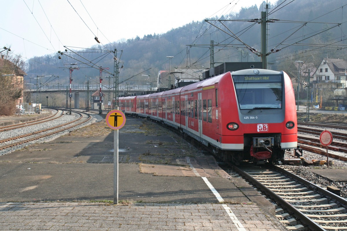 425 304-3 und 425 513-8 als RE 19040 von Rottweil nach Stuttgart Hbf am Vormittag des 06.03.14 beim Verlassen des Bahnhofs Horb am Neckar.