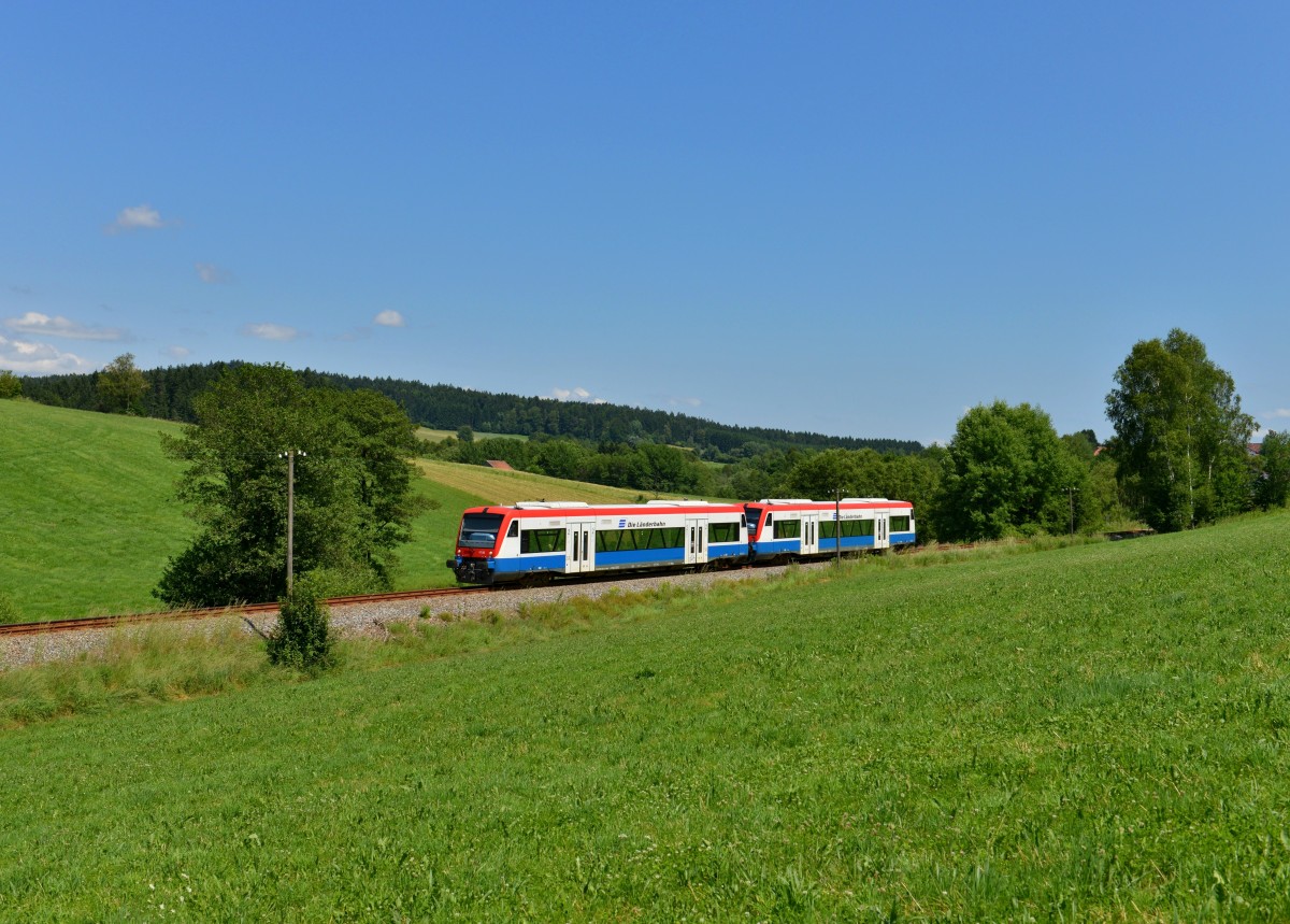 650 565 (VT 65) + 650 563 (VT 63) als RB nach Grafenau am 21.06.2013 bei Rosenau.