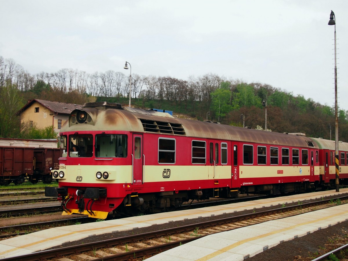 CD 854 001-5 im Hauptbahnhof Mladá Boleslav am 21. 4. 2014.