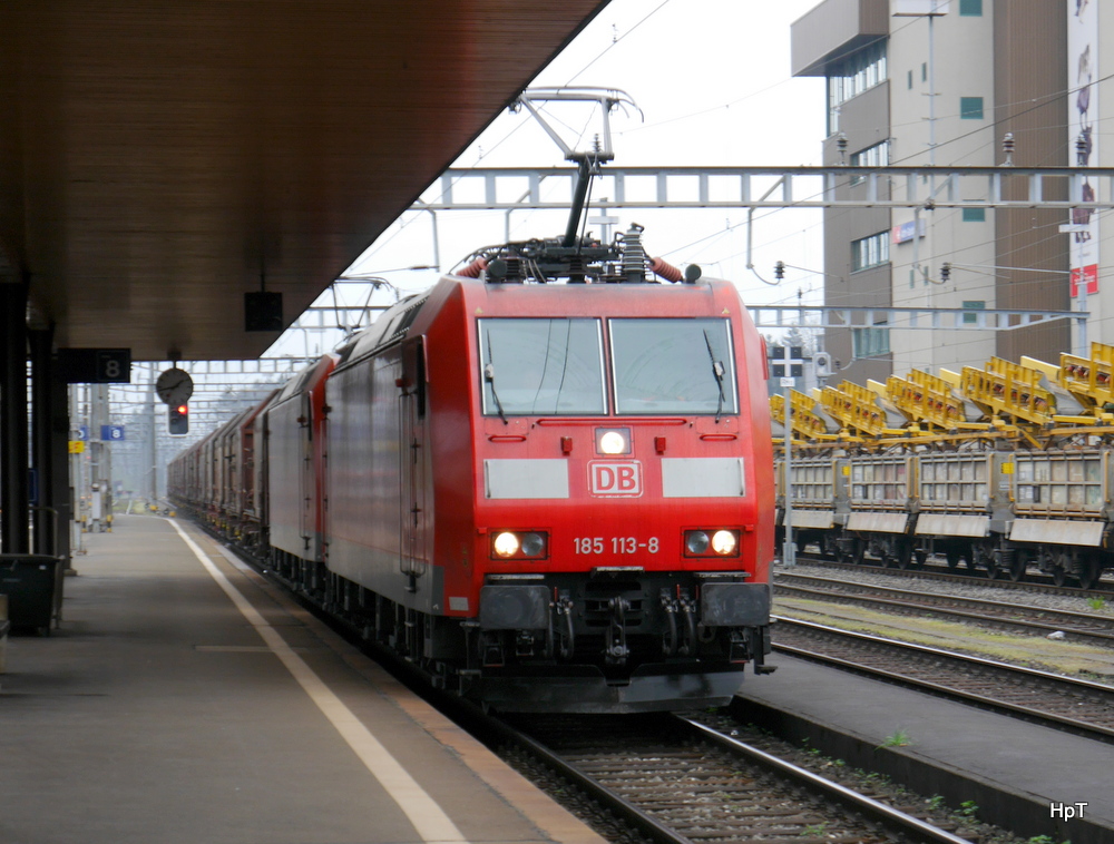 DB - Lok 185 113-8 und 185 ... vor Güterzug bei der durchfahrt im Bahnhof von Goldau am 05.04.2014