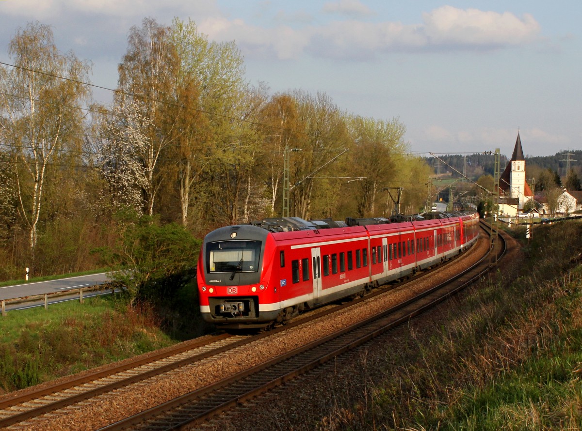 Der 440 044 als RE nach München am 17.04.2012 unterwegs bei Hausbach.