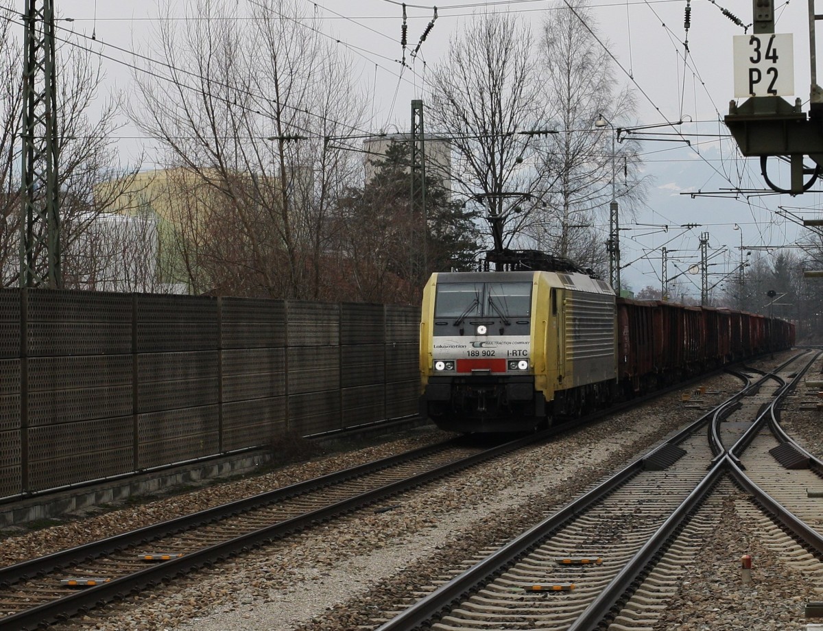 Die 189 902-0 von Lokomotion durchfährt am 24.3.2013 mit dem täglichen Schrottzug den Bahnhof Kiefersfelden, kurz vor der Grenze zu Österreich. In Kufstein ist erstmal Pause von 30 min angesagt. Fotografiert vom Bahnsteigende. Grüße an den TF!