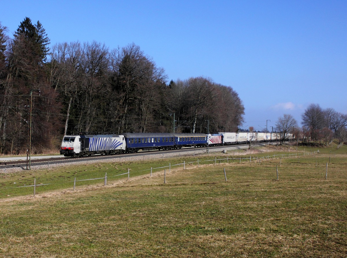 Die 189 917 und die 185 666 mit einem GMP am 07.03.2014 unterwegs bei Hufschlag.