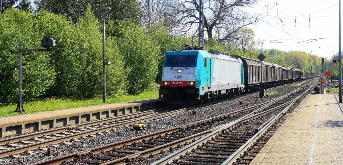 Die Cobra 2811 kommt als Umleiter aus Richtung Aachen-West mit einem langen gemischten Güterzug aus Antwerpen-Noord(B) nach Köln-Gremberg und fährt in Richtung Herzogenrath,Neuss.