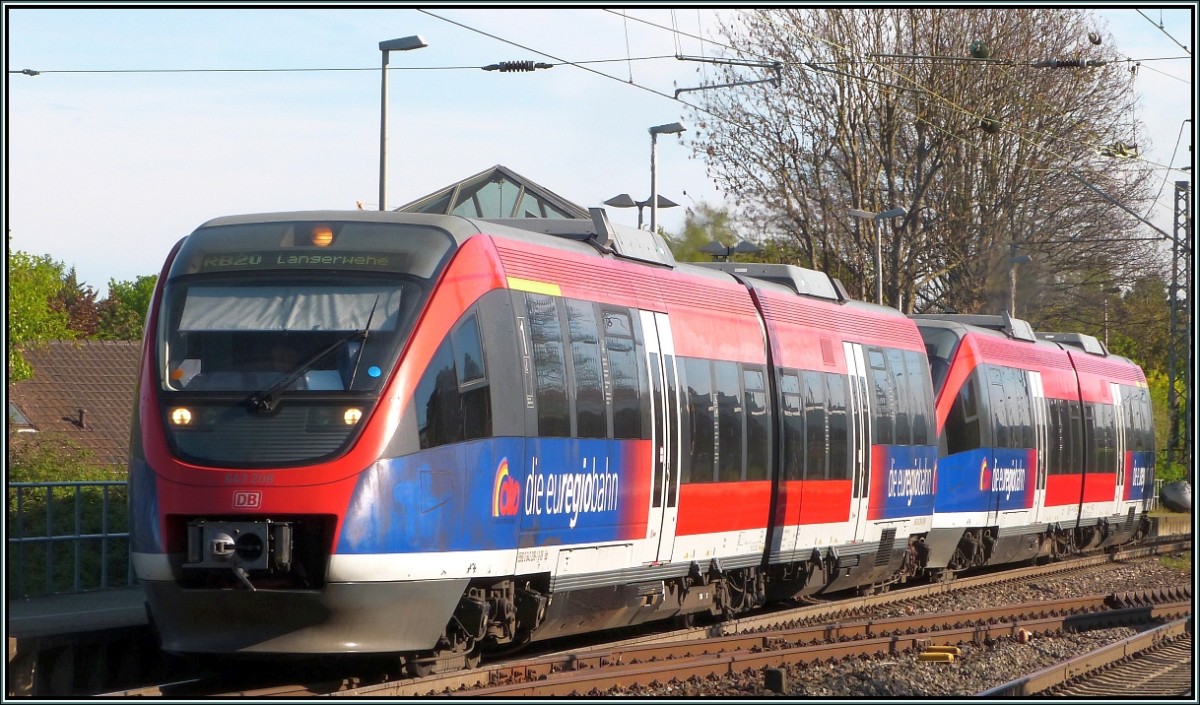 Die Euregiobahn (RB20) beim kurzen Halt in Kohlscheid (Kr.Aachen) am 17.April 2014.