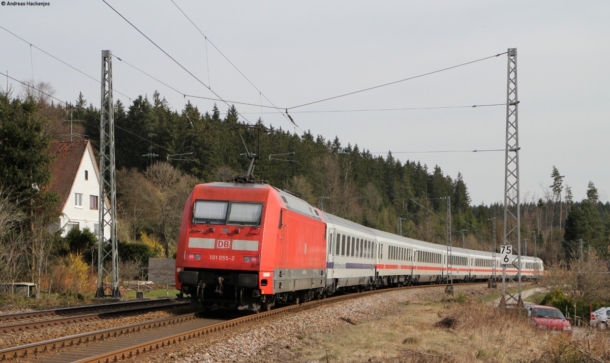 IC 2279 "Schwarzwald" (Stralsund Hbf-Konstanz) mit Schublok 101 055-2 bei Peterzell 2.4.14