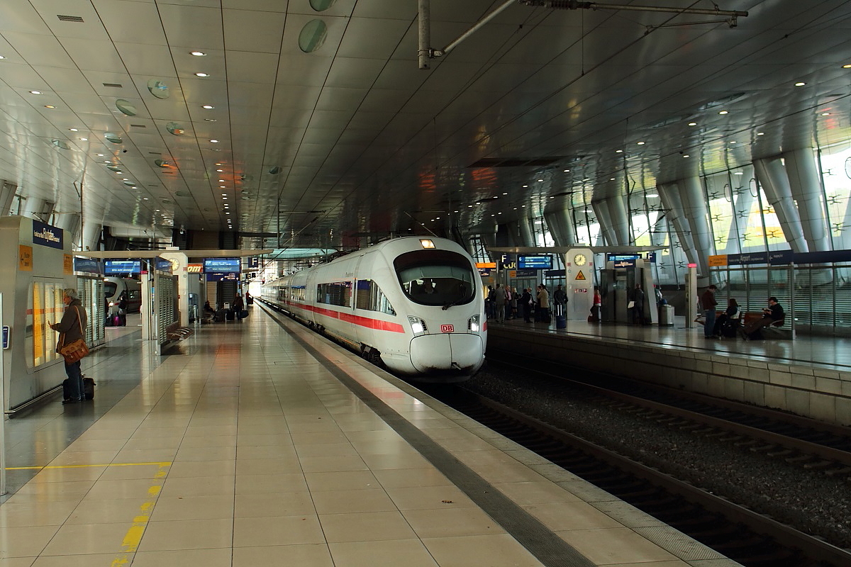 ICE 27 nach Wien Westbahnhof verläßt am 09.04.2014 den blitzblanken Frankfurter Flughafenbahnhof