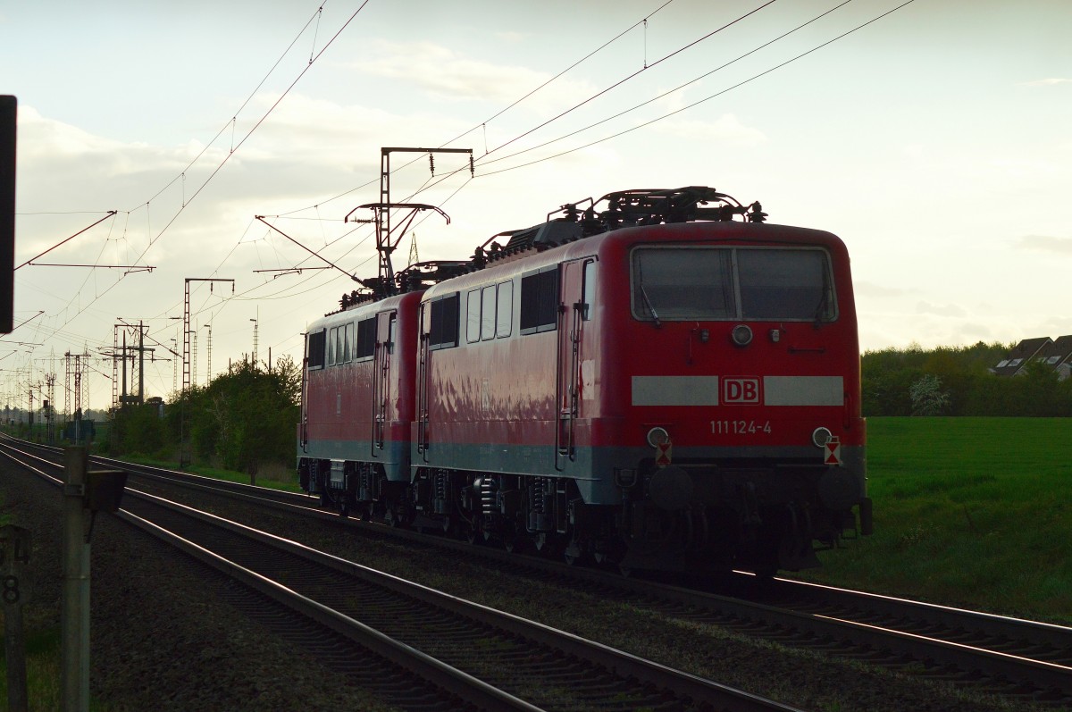 111 112 schiebt RE4 am 14.04.2014 auf der KBS 485 aus Aachen West nach Herzogenrath.