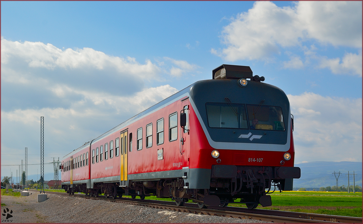 SŽ 814-107 fährt durch Cirkovce Richtung Murska Sobota. /11.4.2014