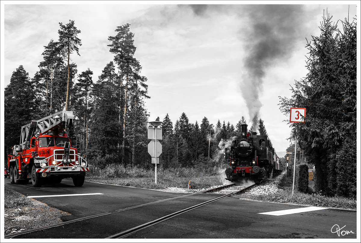 Tatü Tata - die Feuerwehr ist da .... 88.103 & 93.1332 der NBiK auf der Fahrt von Weizelsdorf nach Ferlach.