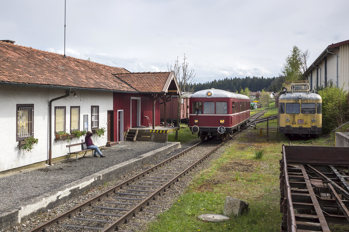 VT 103 der CLB fährt am 21.04.2014 als Ostersonderzug aus Bad Endorf kommend in den Bahnhof Obing ein.