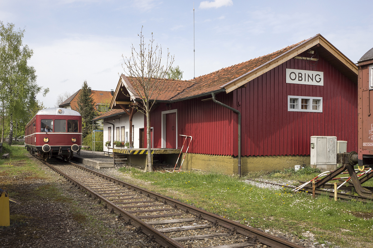 VT 103 der CLB fährt am 21.04.2014 als Ostersonderzug aus dem Bahnhof Obing nach Bad Endorf aus.