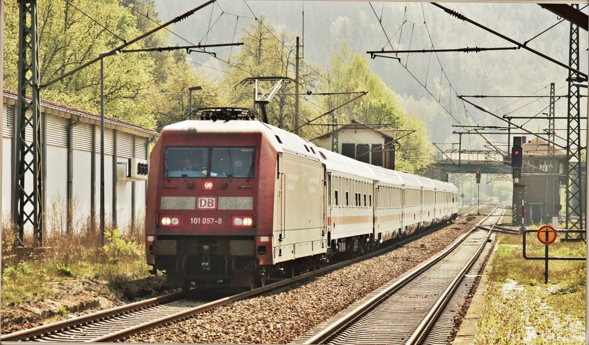 101 057-8 mit dem IC 2208 von München-Berlin am 24.04.14 in Probstzella.