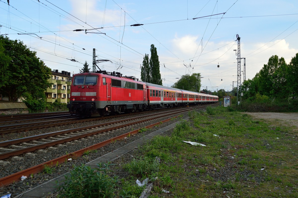 RE4 Verstärkerzug fährt steuerwagenvoraus aus dem Rheydter Hbf gen Aachen aus.
