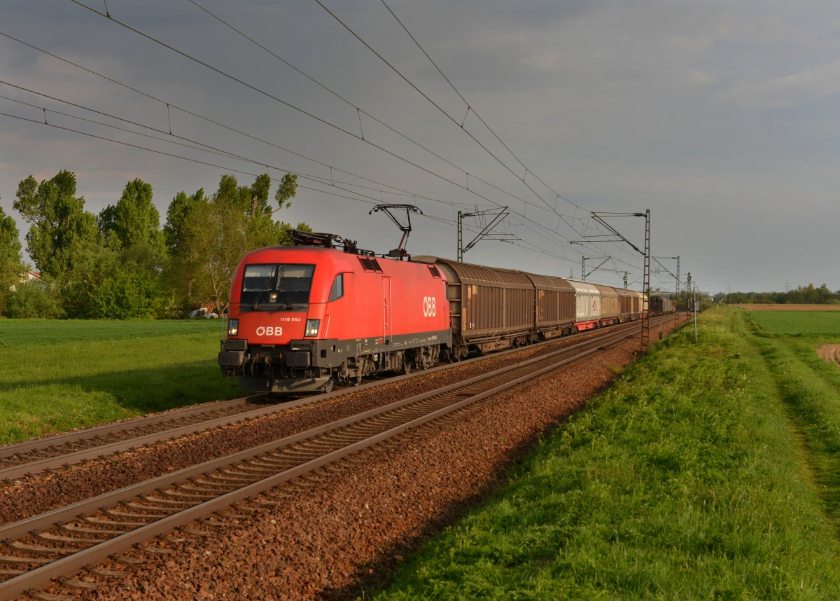 1116 093 mit einem Güterzug am 24.04.2014 bei Plattling.